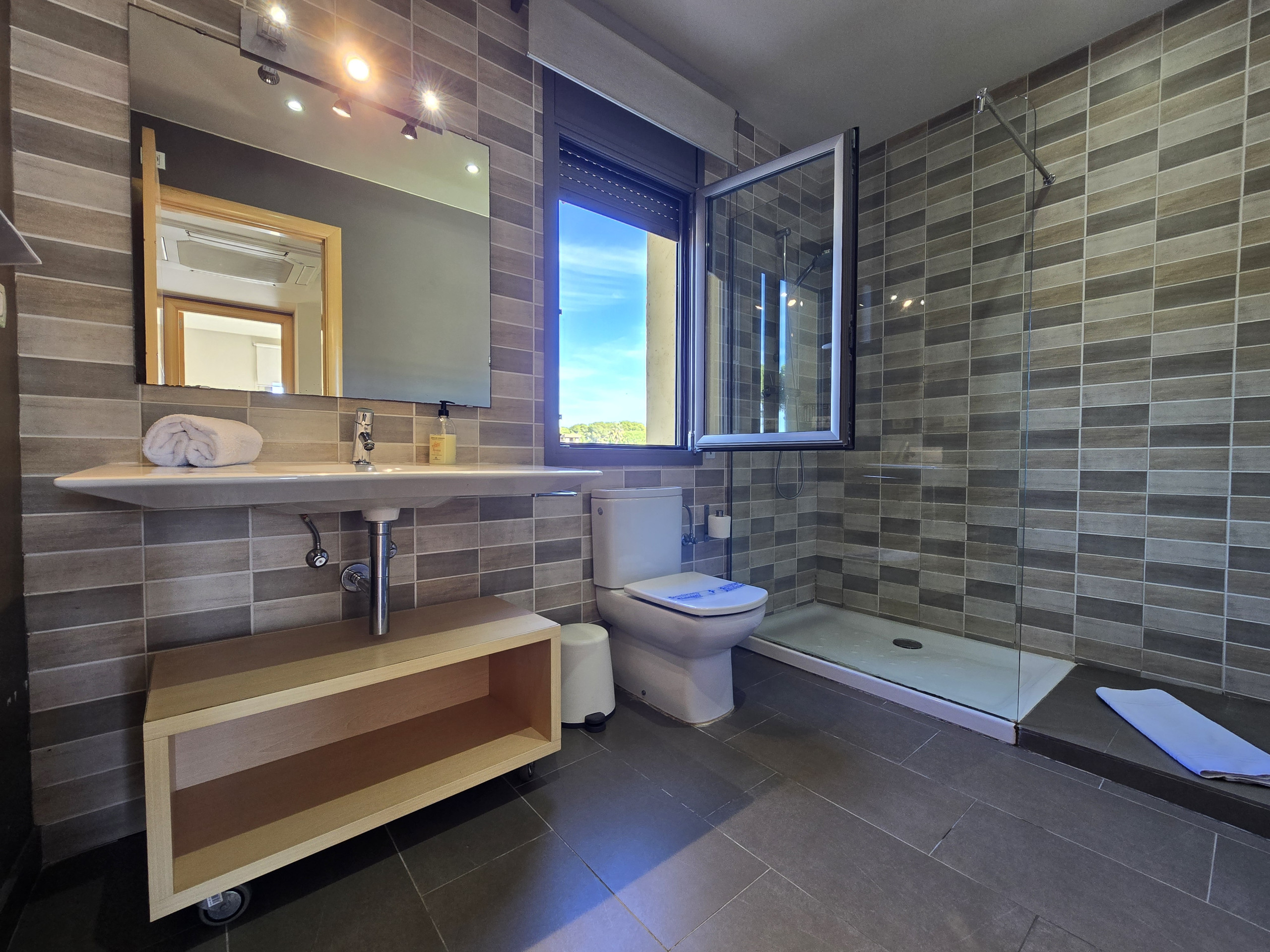 La casa se divide en dos plantas, en planta baja se encuentra el amplio salón-comedor con salida a la terraza, un cuarto de baño con ducha, y cocina abierta (menaje, ollas, i sartenes) con salida a la barbacoa. Todo en esta casa está pensado para una estancia cómoda: hay aire acondicionado, barbacoa, mesa de ping-pong, dardos, garaje privado y una plaza de parking privado.