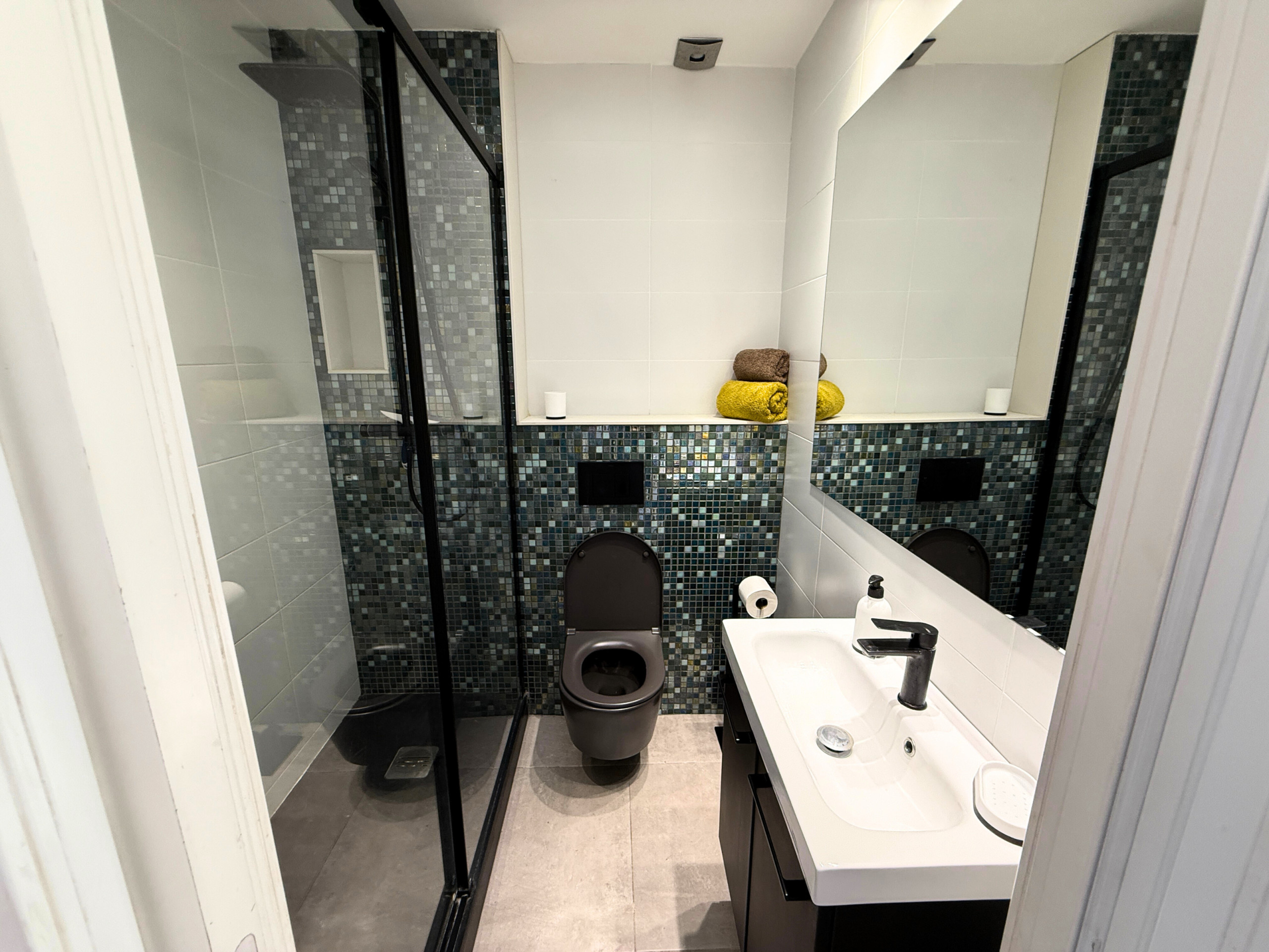 El apartamento dispone de dos dormitorios confortables: uno con cama doble y otro con dos camas individuales, además de un baño completo con ducha. Para una estancia aún más agradable, ofrece aire acondicionado en el comedor, televisión, lavadora y plaza de aparcamiento privado en el mismo edificio.
