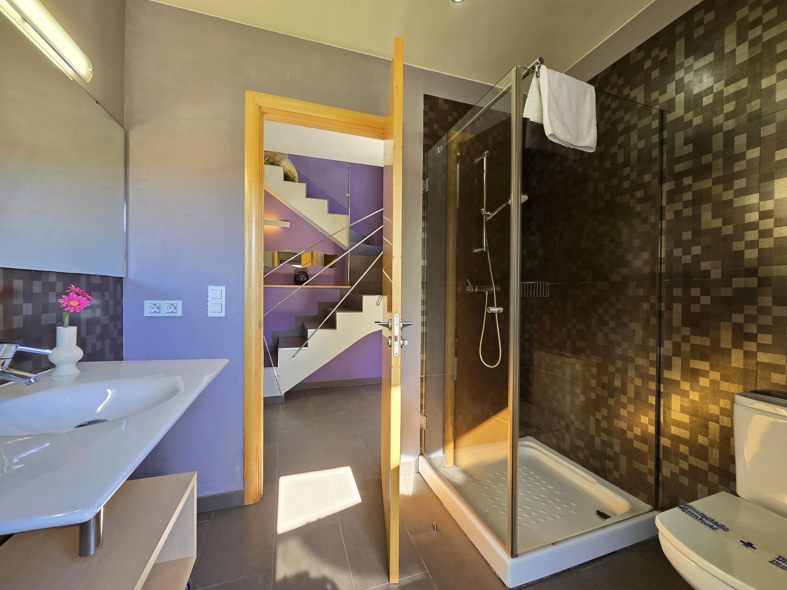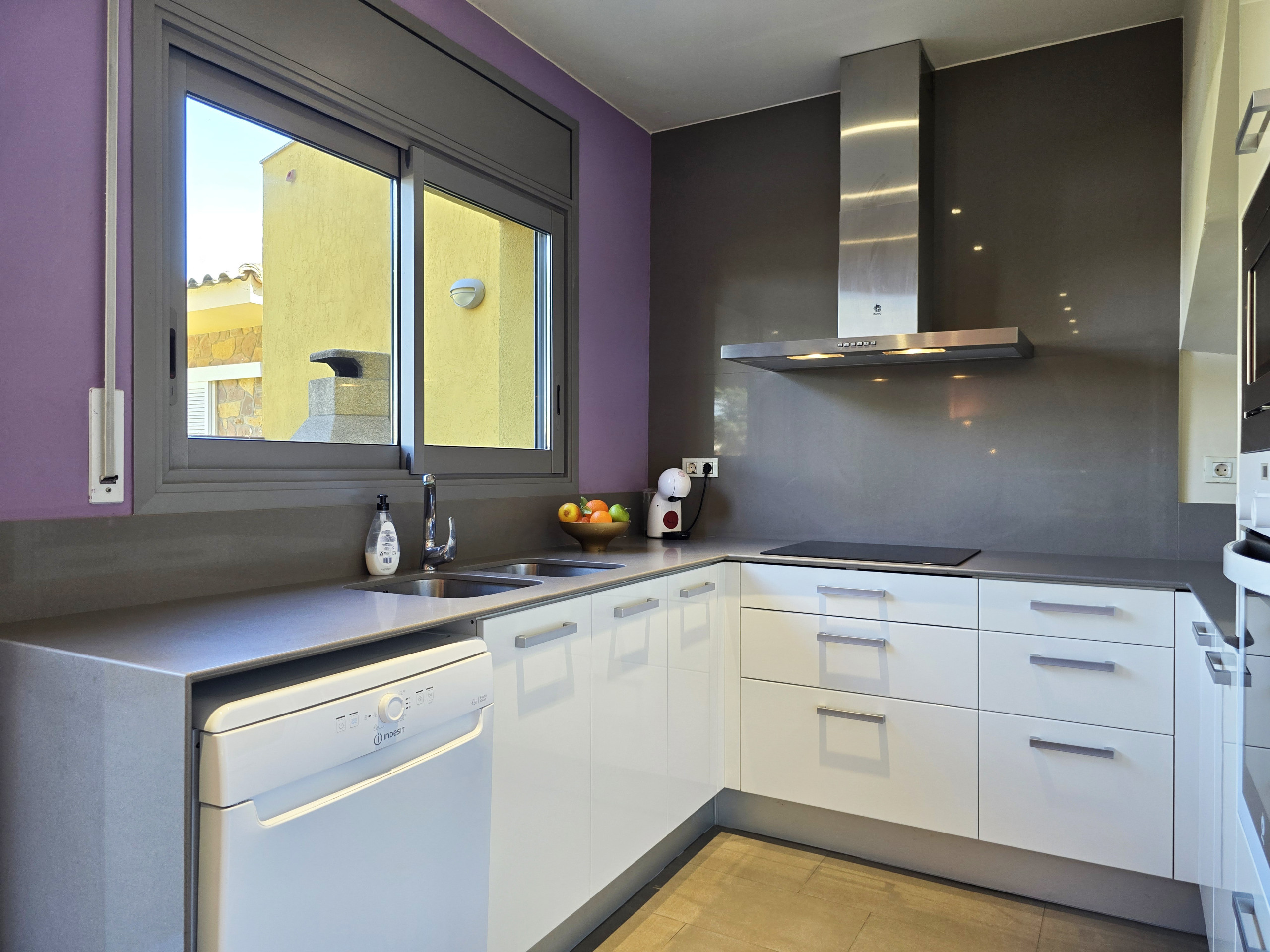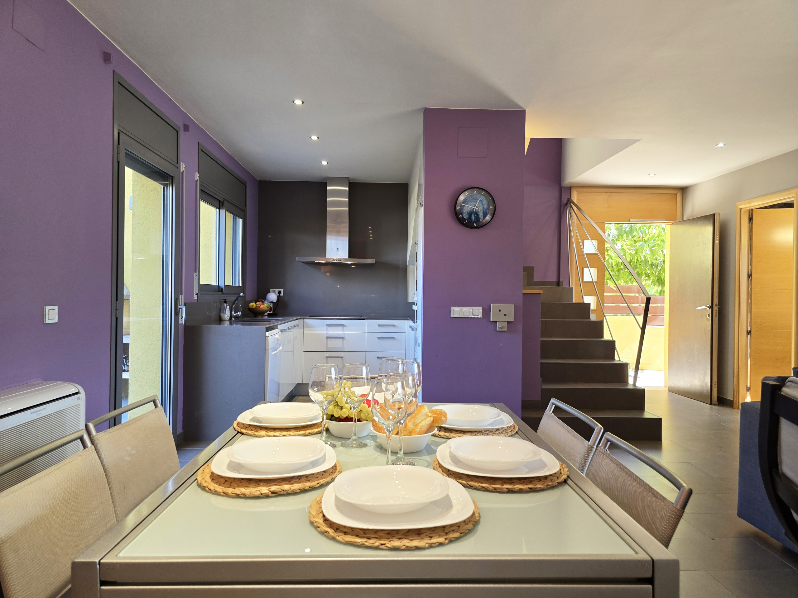 La casa es divideix en dues plantes, a la planta baixa es troba l'ampli saló-menjador amb sortida a la terrassa, un bany amb dutxa, i cuina oberta (parament, olles i paelles) amb sortida a la barbacoa.Tot en aquesta vila està pensat per a una estada còmoda. A la vila hi ha aire condicionat, barbacoa, taula de ping-pong, dards, garatge privat i una plaça de pàrquing privat.