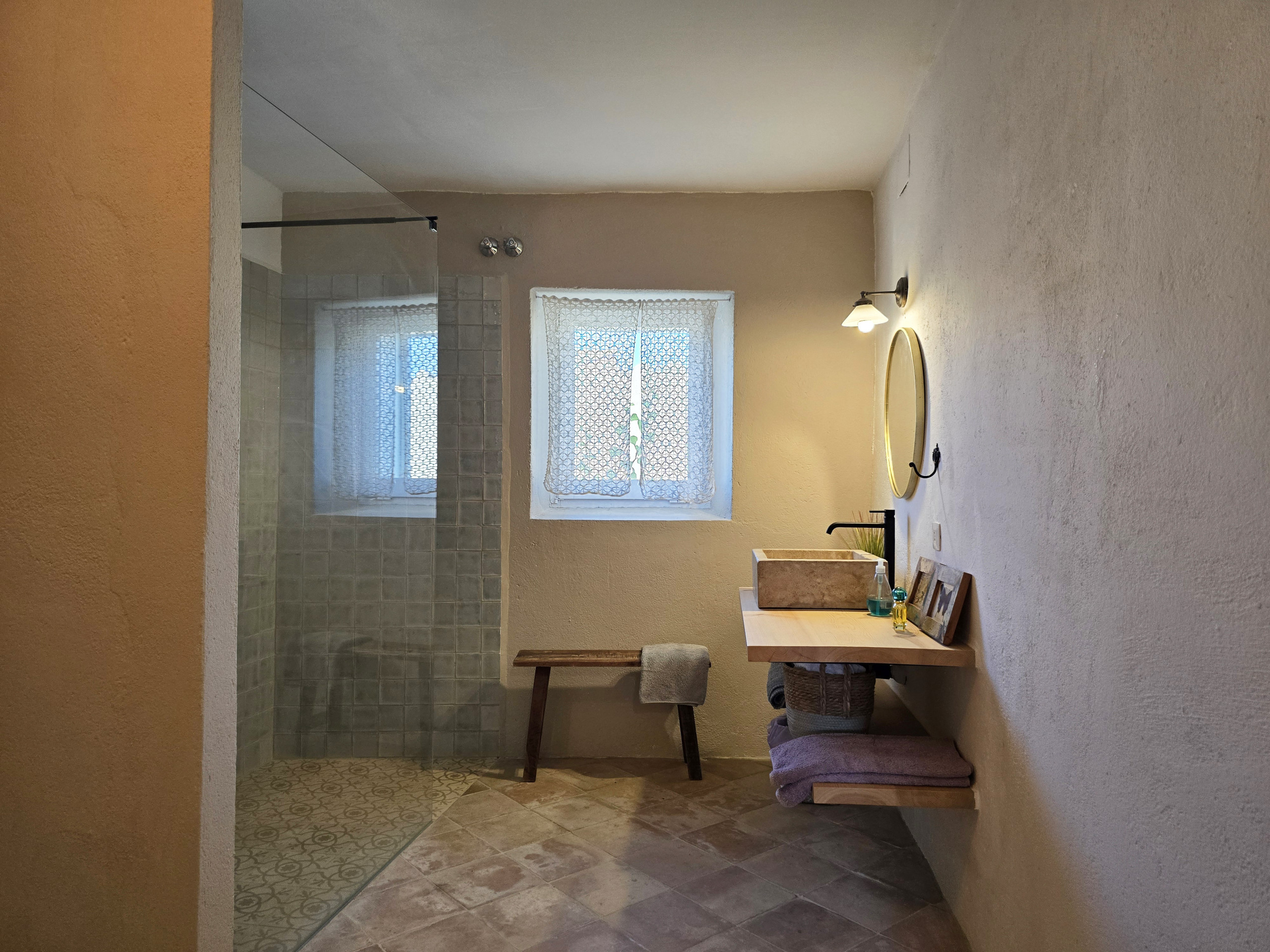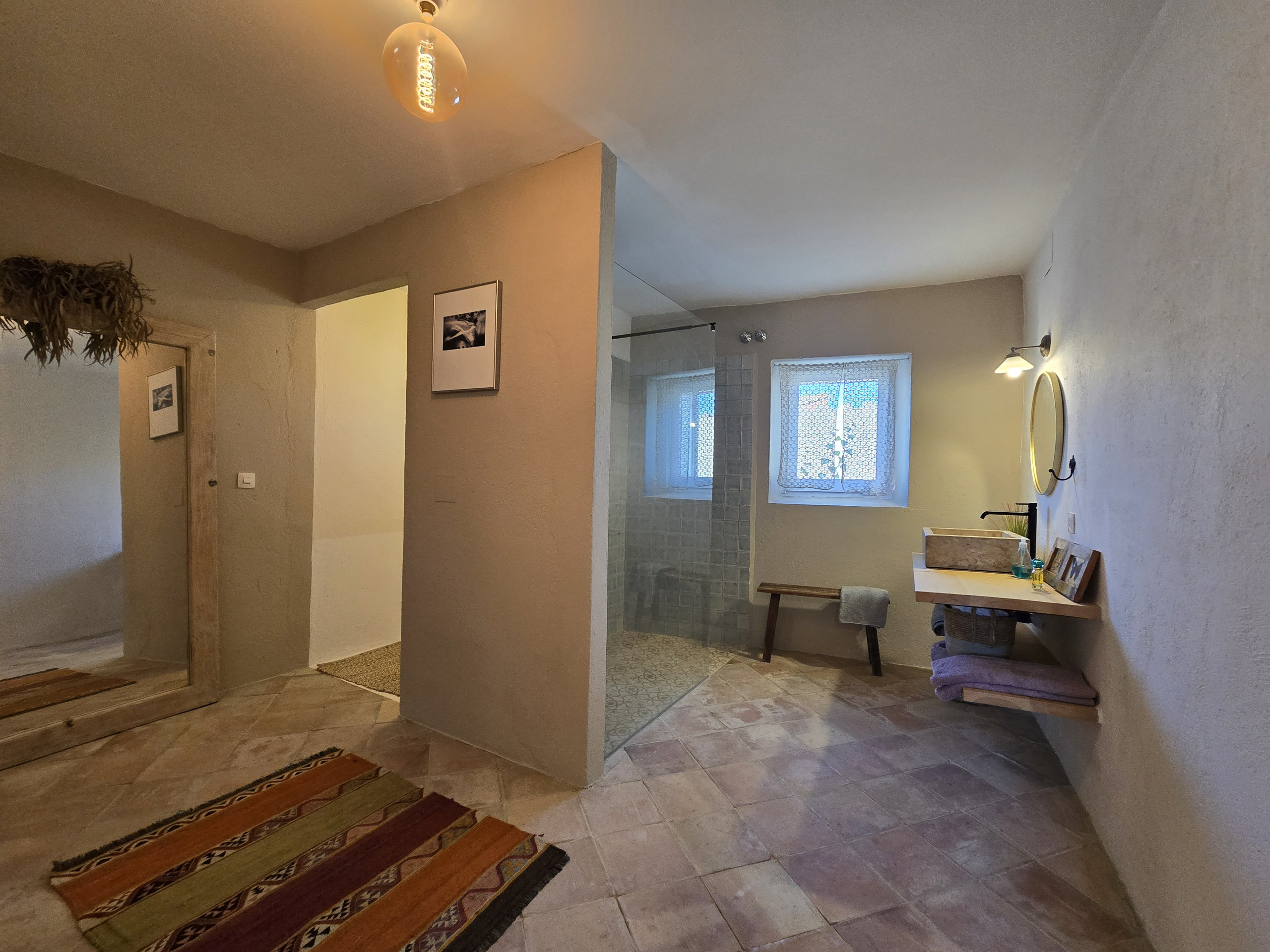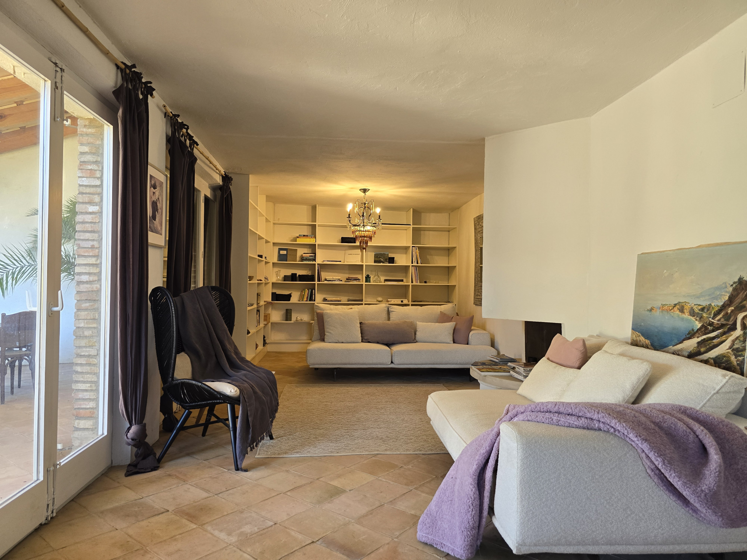 First floor: living-dining room with open kitchen and access to the terrace, bathroom, two cozy rooms, one of which opens onto another terrace with chill-out area.