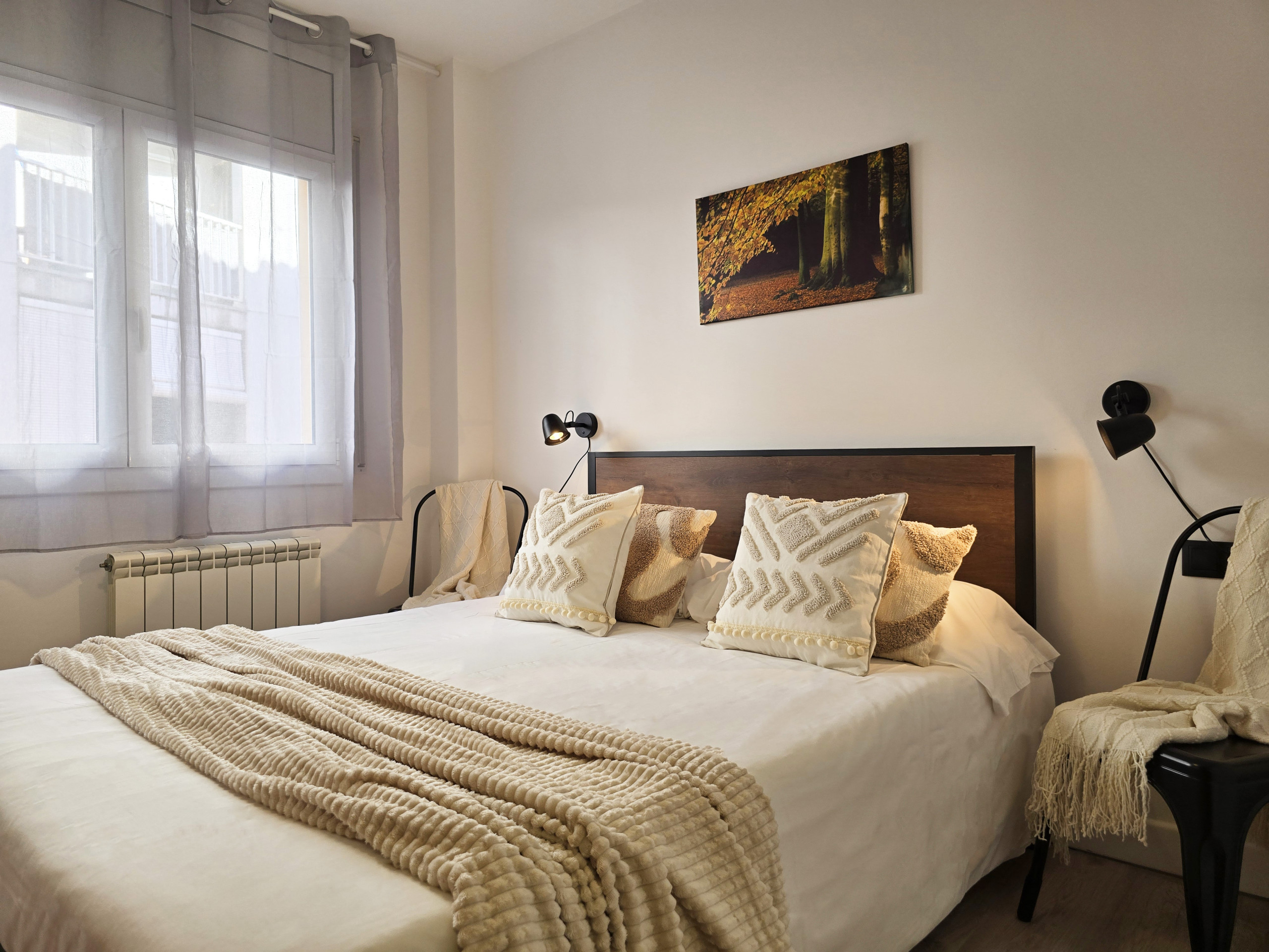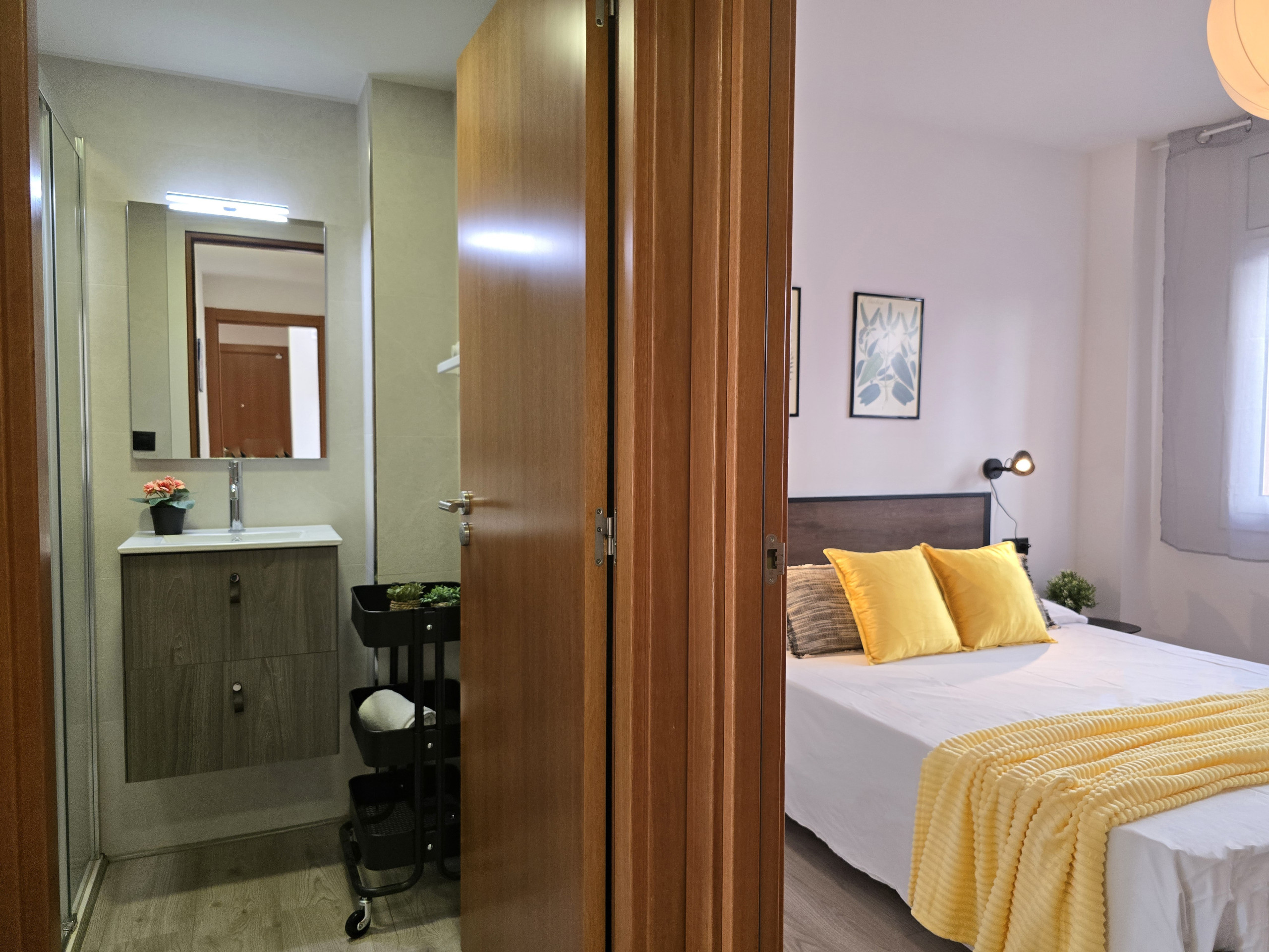 Il dispose de trois chambres avec lit double, offrant une distribution très confortable pour les familles ou les groupes. L’une d’elles est une suite avec salle de bain privée, et il y a également une deuxième salle de bain avec douche, ce qui apporte davantage de confort et d’intimité pendant le séjour.