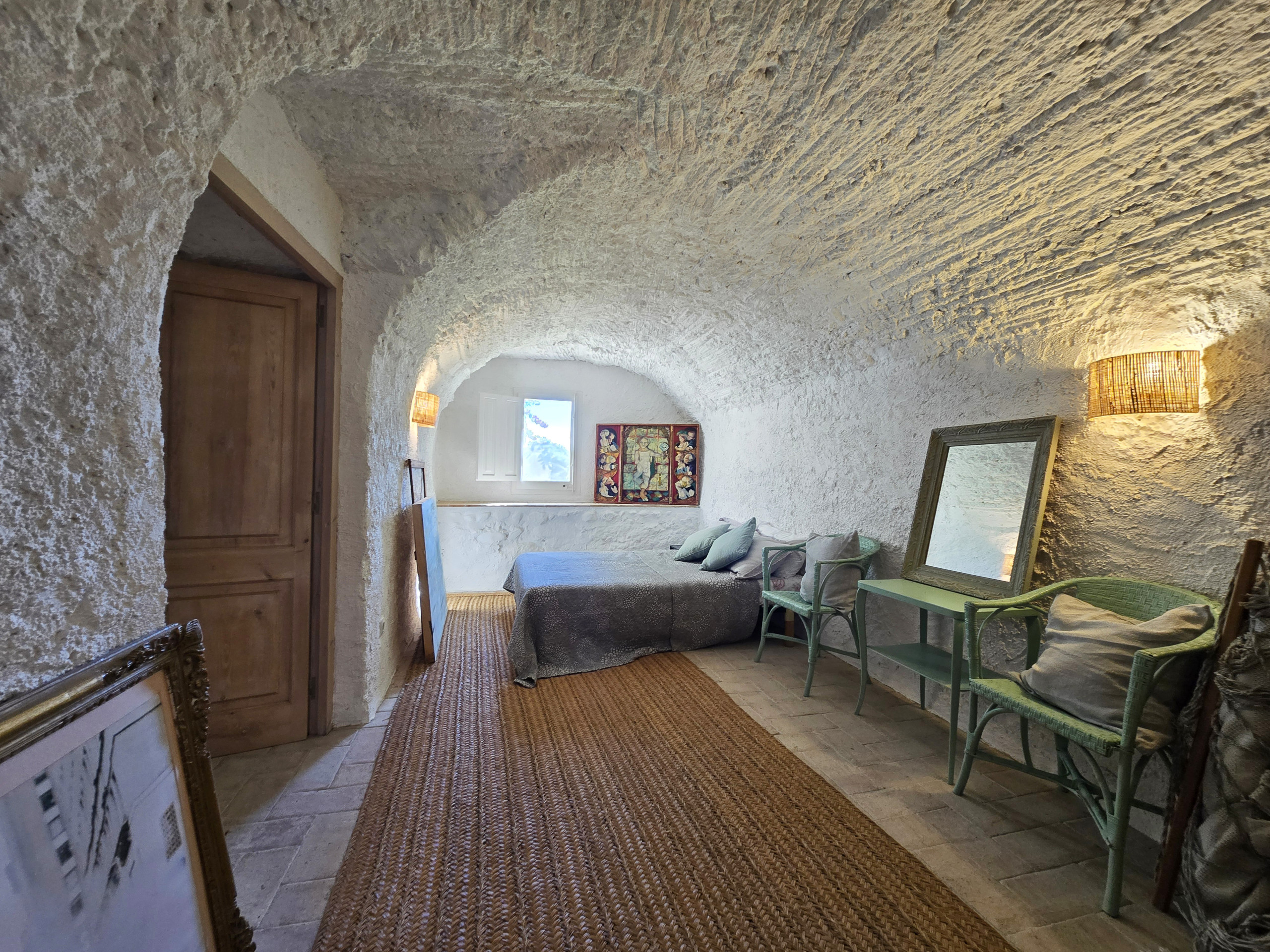Первый этаж: прихожая, большая гостиная, две спальни с выходом в сад, ванная комната, кладовая с винным погребом.